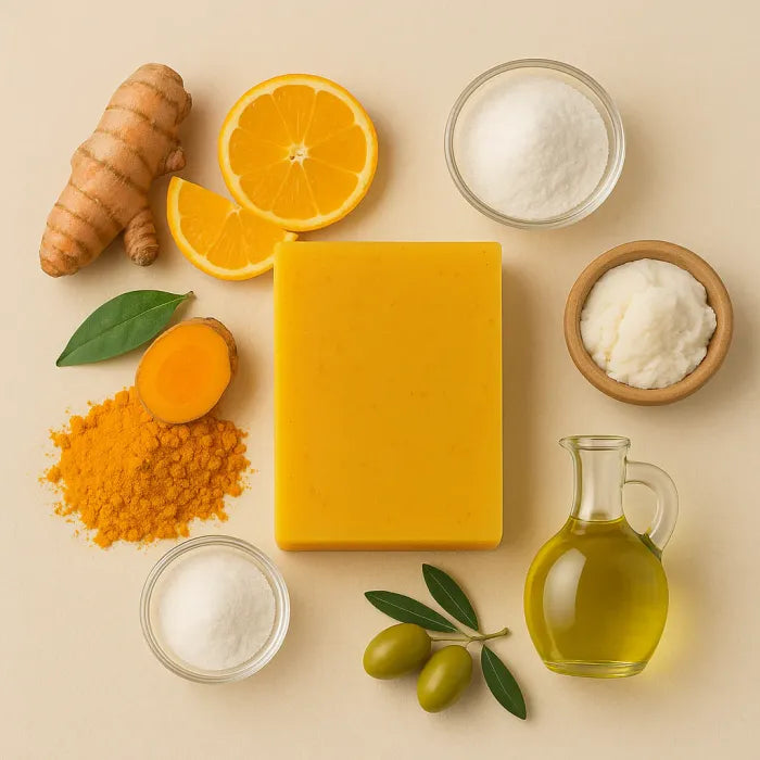 Our soap combines turmeric, vitamin C, and shea butter to visibly reduce blemishes and refine your skin – for clearer, smoother skin and renewed confidence.
